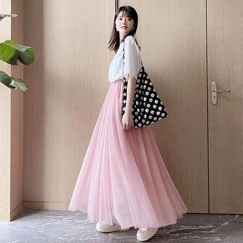 프리미엄 이중 시스루소재 라인스커트스위트 발레리나 맥시드레스
