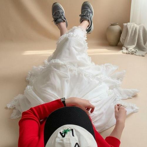 [옷자락]여성 발레 프릴 캉캉 롱스커트 시스루 러블리