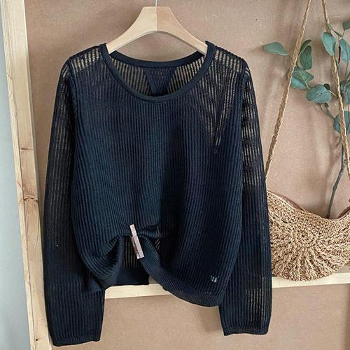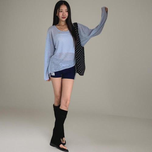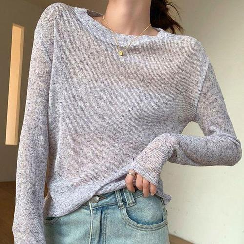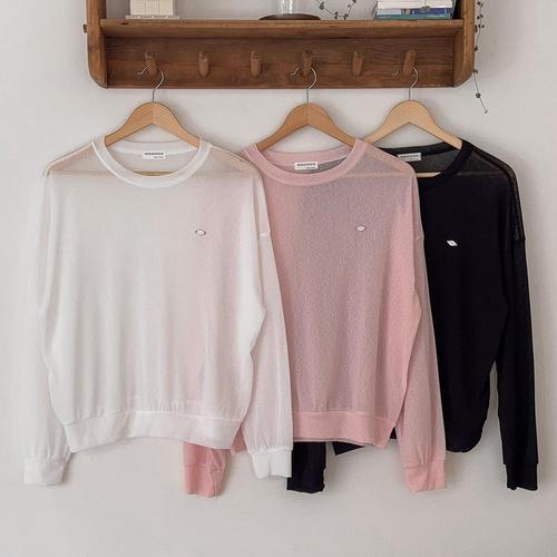 [셀러허브_여성트랜드패션]ONM 여자 여리여리 시스루 라운드 긴팔니트 티셔츠 데일리