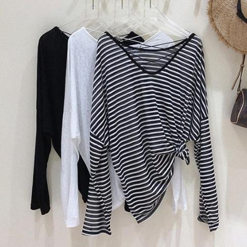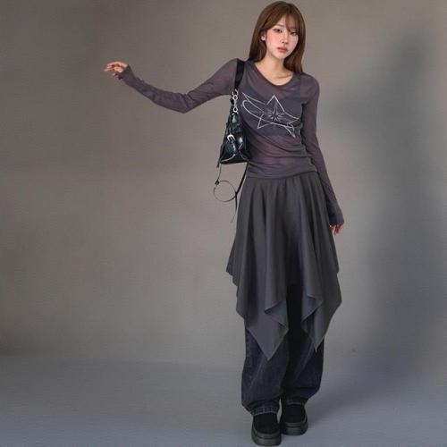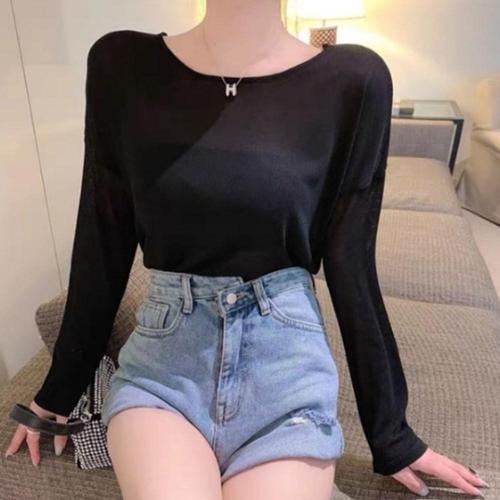 |KHT9697|여성 여름 시스루 언발란스 루즈핏 라운드넥 긴팔 티셔츠