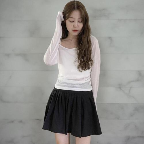 [옷자락] 여성 시스루 여리핏 긴팔티 나시티 세트