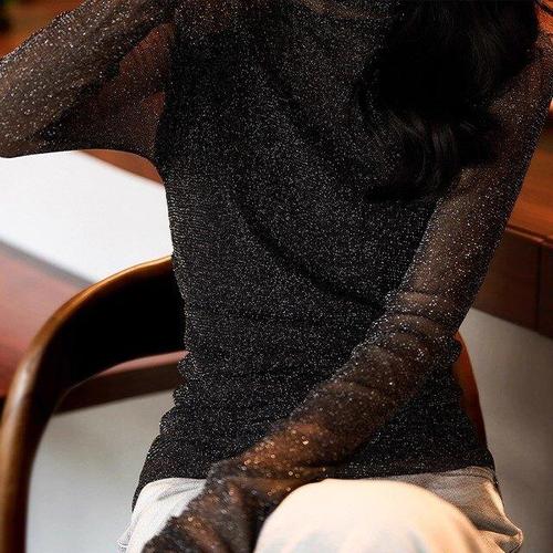 [신상오픈런]|CCT987C|여성 블랙 벨벳 시스루 긴팔 티셔츠 독특한 디자인_22777286_597559
