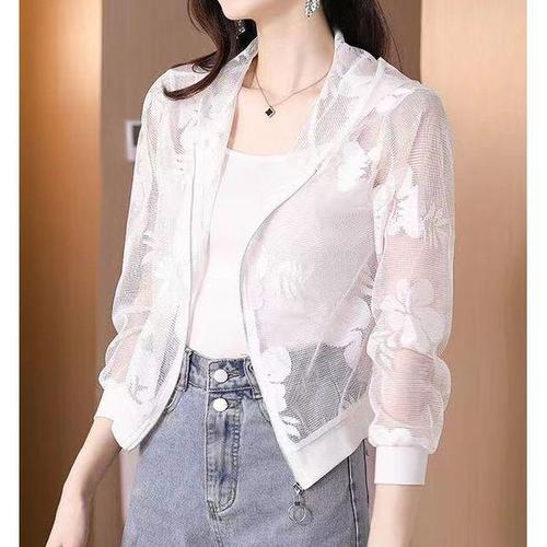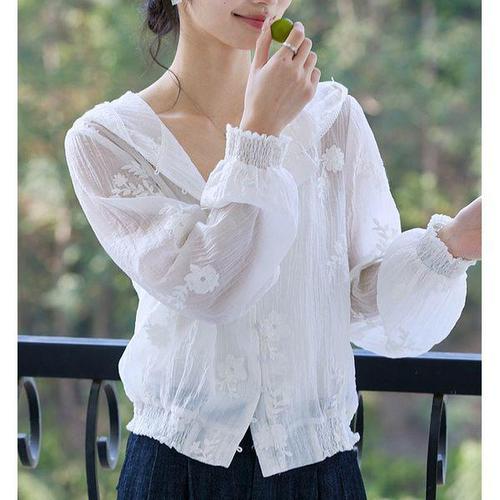 [에이치플러스몰]여성 여행 나들이 바람막이 시스루 플라워 후드 점퍼