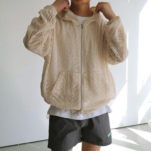 [에이치플러스몰]여성 바람막이 시스루 점퍼 루즈핏 후드 간절기 여름