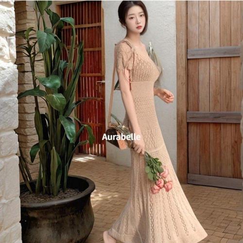 [오너클랜]인기상품 글램 시스루 반팔 롱 니트 원피스 베이지 여름 데일리룩 [WFLKQW8_260303]