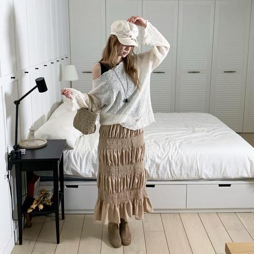 옷자락 / 여자 봄 여름 시스루 뜨개 니트 블라우스 세트