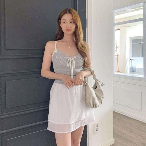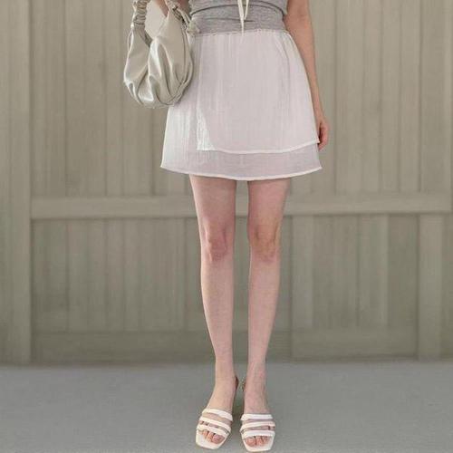 [옷자락]여성 여름 시스루 레이어드 랩 미니 스커트