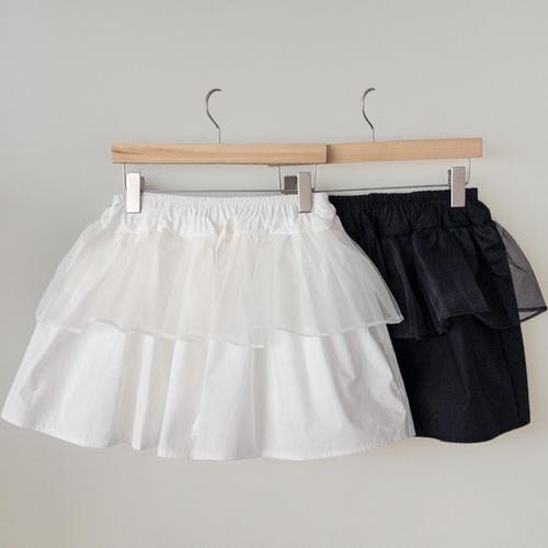 |KSK14CC|여성 시스루 오간자 레이어드 캉캉 미니스커트