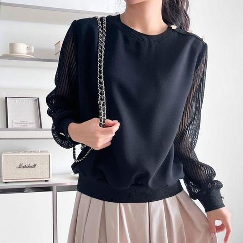 [신상오픈런]여성용 하트 버튼 시스루 플리츠 긴팔 오버핏 봄철 블라우스