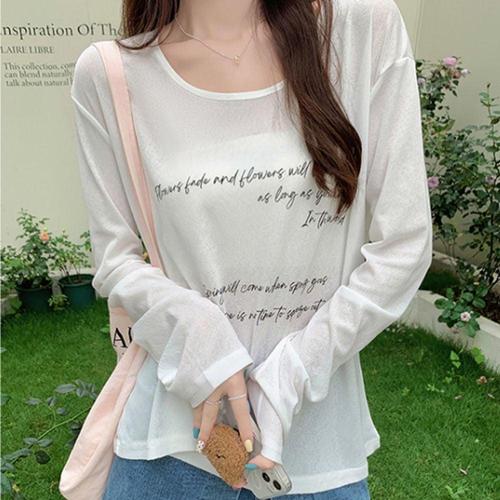 루즈핏 캐주얼 시스루 트임 긴팔 티셔츠 LK-G025