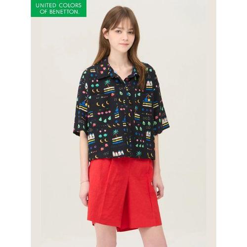 [베네통]배색 패턴 시어서커 블라우스_BABLA6631
