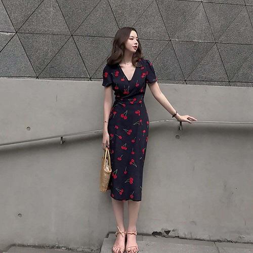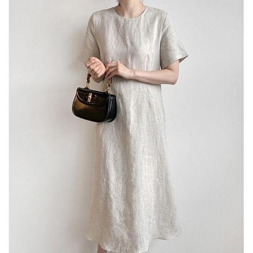 [에이치플러스몰]여자 브이넥 시원한 소재 반팔 원피스 URK-492