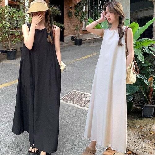 시원한 여름 휴양지 순면 민소매 나시 원피스