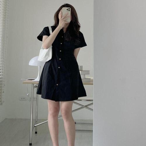[모노무드]모노무드 가볍고 시원한소재 슬림핏 여성 카라 반팔 미니원피스