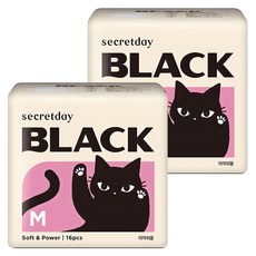 시크릿데이 블랙 생리대 날개형, 중형, 16개입, 2개