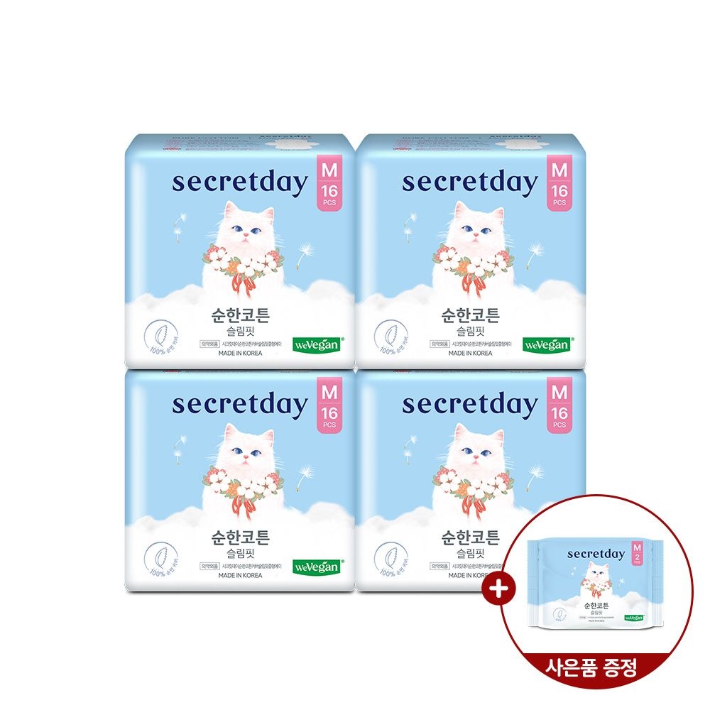 [시크릿데이] [주말한정 100%사은품] 시크릿데이 순한코튼 오가닉커버 중형 16PX4팩+대형 14PX4팩+사은품