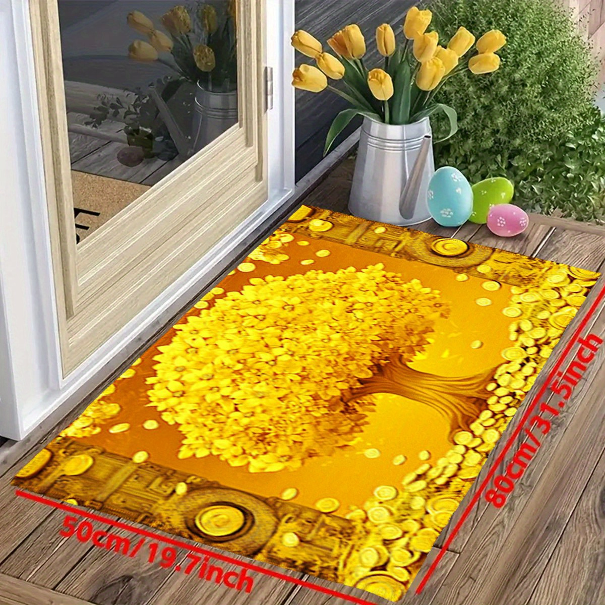 TEMU [제품] 골든 머니 트리 패턴 매트, 세탁 가능한 카펫, 직조 직사각형 러그, 현관, 거실, 침실, 욕실 및 세탁실과 같은 다양한 공간의 장식에 적합합니다. 부활절/추수감사절 선물.