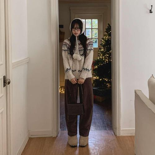 [시크블랙]하베루 루즈핏 노르딕 울 니트 후드 집업