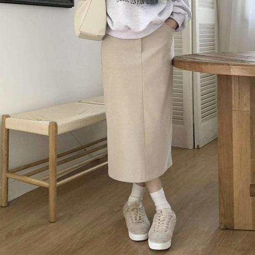 [시크블랙]아벨라 H라인 기모 롱 미디 스커트