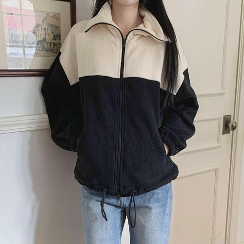 [시크블랙]흐다하 오버핏 투톤 배색 후리스 투웨이 집업