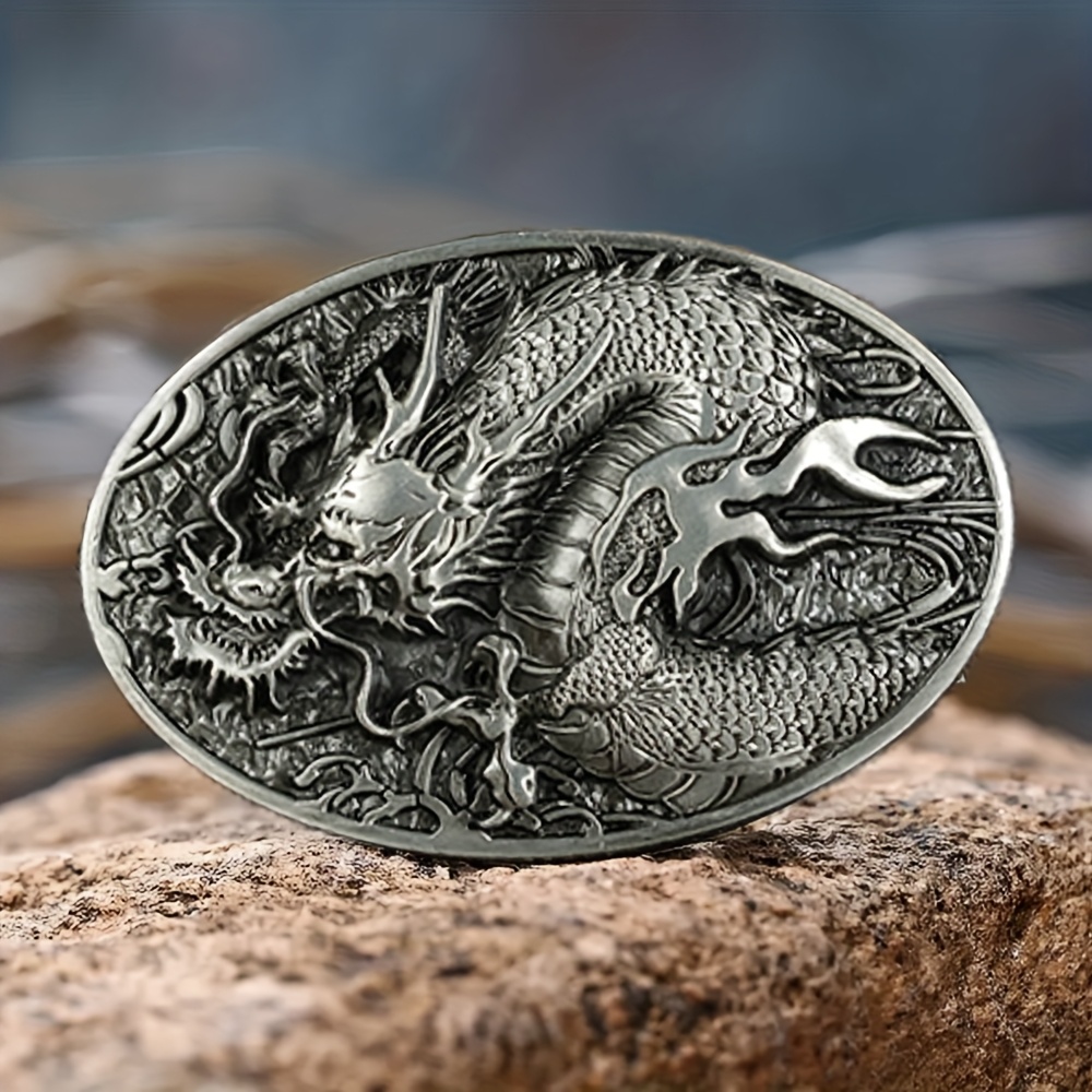 TEMU 1개 입체 드래곤 날아가는 릴리프 오벌 버클, 트렌디한 서양 간단한 남성용 벨트 버클, 서유럽 및 미국 스타일로 어떤 스타일의 벨트와도 매치 가능, 선물용