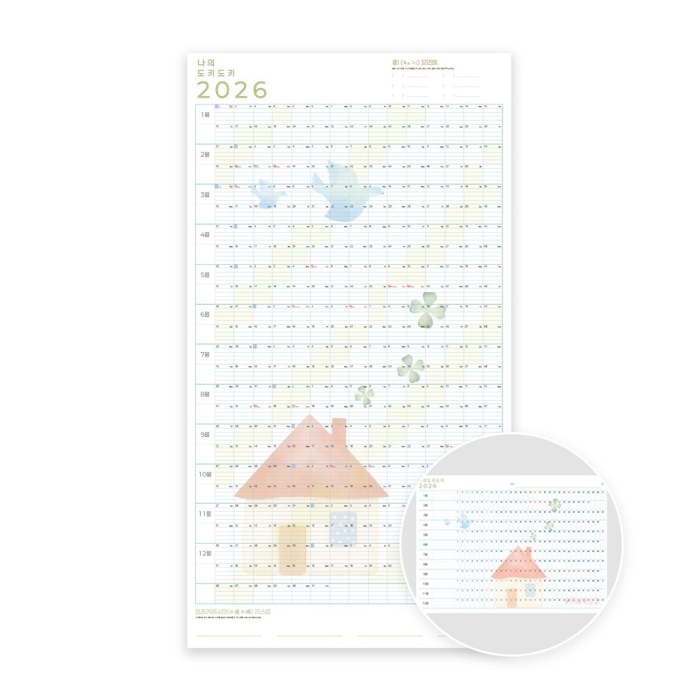 2026년 세로 한장 연력 포스터달력 set 대형1매+ 소형1매 1년 연간 낱장 캘린더