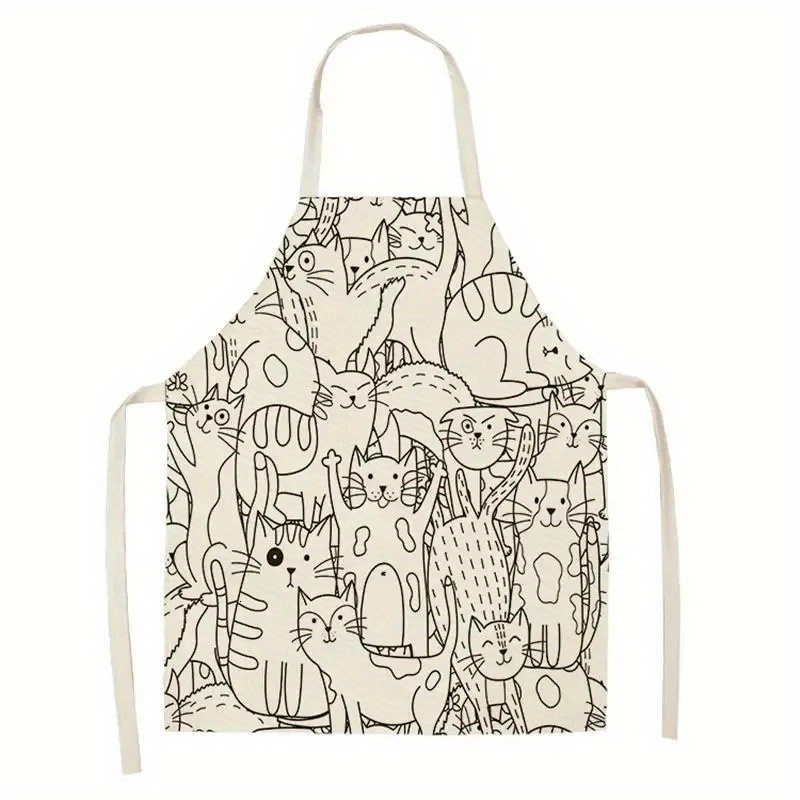 TEMU 귀여운 고양이 패턴 앞치마 - 만화 고양이와 글자 디자인, 튼튼하고 세척이 용이하며 요리, 정원 가꾸기 및 홈 데코에 적합합니다. 이 고양이 앞치마는 편리한 세탁 가능한 원단으로 재미있는 주방 의상입니다.