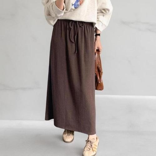 [다잇템][다잇템] 여성 골지 고무줄 큰사이즈 리본 긴치마 슬릿 스커트_23081169_588872