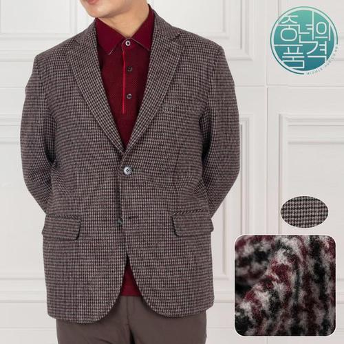 국내산 남성 체크 모직 정장 콤비 자켓 남자 울 세미 신사 양복 재킷 중년 겨울
