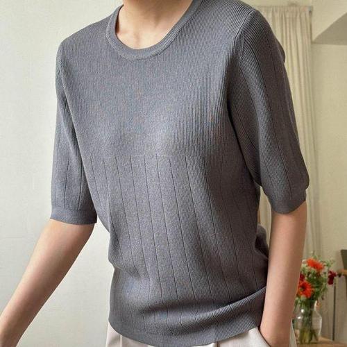 [신상오픈런]여자 간절기 반팔티 골지 라운드넥 가을컬러 니트