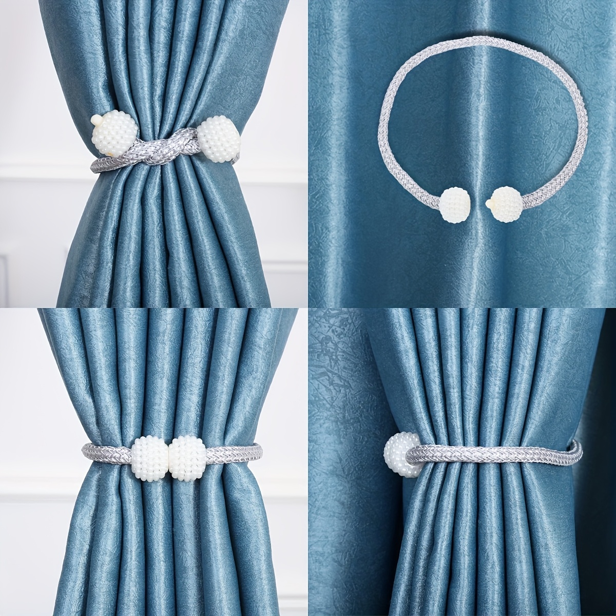 TEMU 4개 모조 진주 장식 커튼 타이백, 현대적인 홈 데코 커튼 홀더, 드릴링 불필요, 설치 용이, 침실, 거실 및 홈 데코용 커튼 버클 - 공간 절약, 커튼 홀더/홀드백, 커튼 타이백, 커튼 부착, 커튼 액세서리