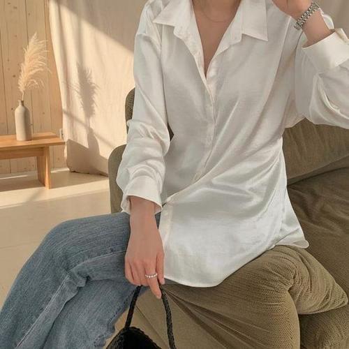 [옷자락]여성 우아한 실크 샤틴 끈민소매 탑