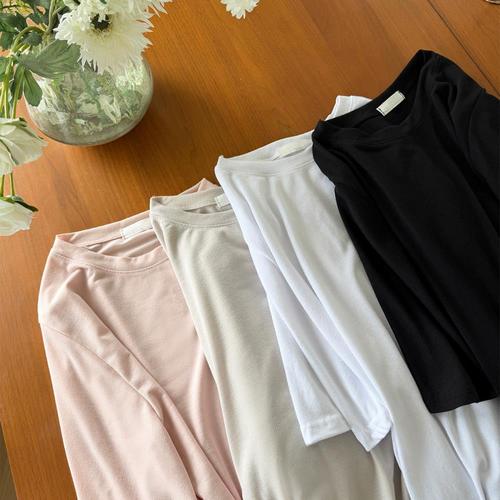 [옷자락] 여성 실키 데일리 편안한 라운드넥 반팔 티셔츠