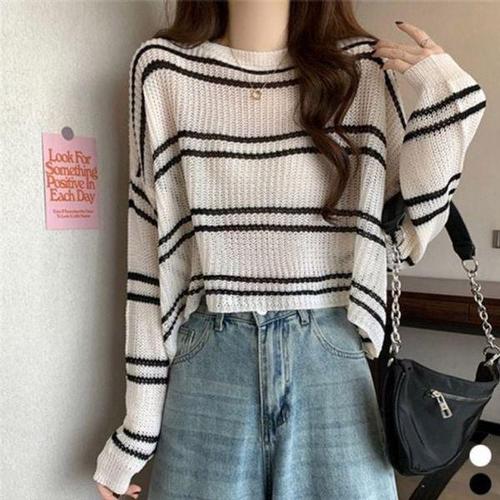 [에이치플러스몰]심플 쉬어소재 숏탑가로줄 울탑
