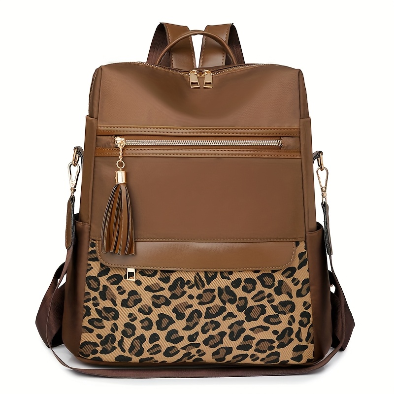 TEMU 여성용 경량 옥스포드 백팩, 탈착 가능한 어깨끈 - 대용량 캐주얼 데이백 여행 및 업무용, 지퍼 클로저 & 폴리에스터 안감, 라이트 브라운/베이지/블랙, 다용도 패션 가방, 우아한 태슬 디테일