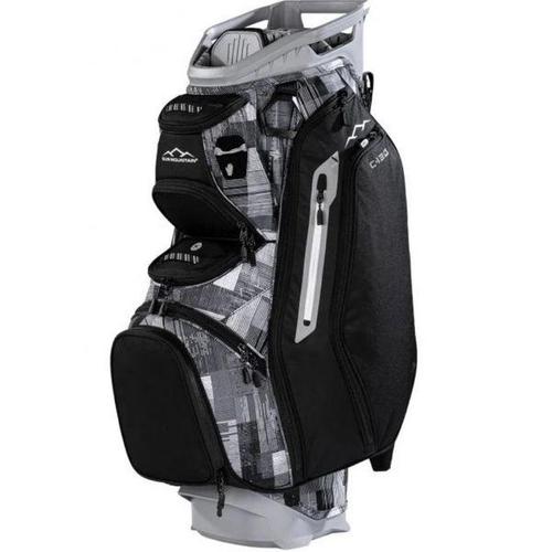 선 마운틴 남성용 C130 경량 카트 골프백 14방향 탑 - 11개 포켓, 스마트 듀얼 스트랩 시스템, 푸시 전기 라이딩 호환 압축 베이스, 2025년형 블랙-화이트 45235
