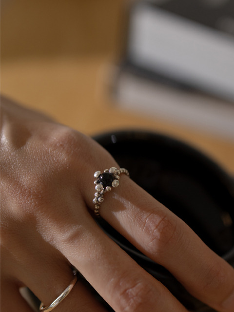 [키이 오시무] (실버 925) 003 선플라워 오닉스 링 반지