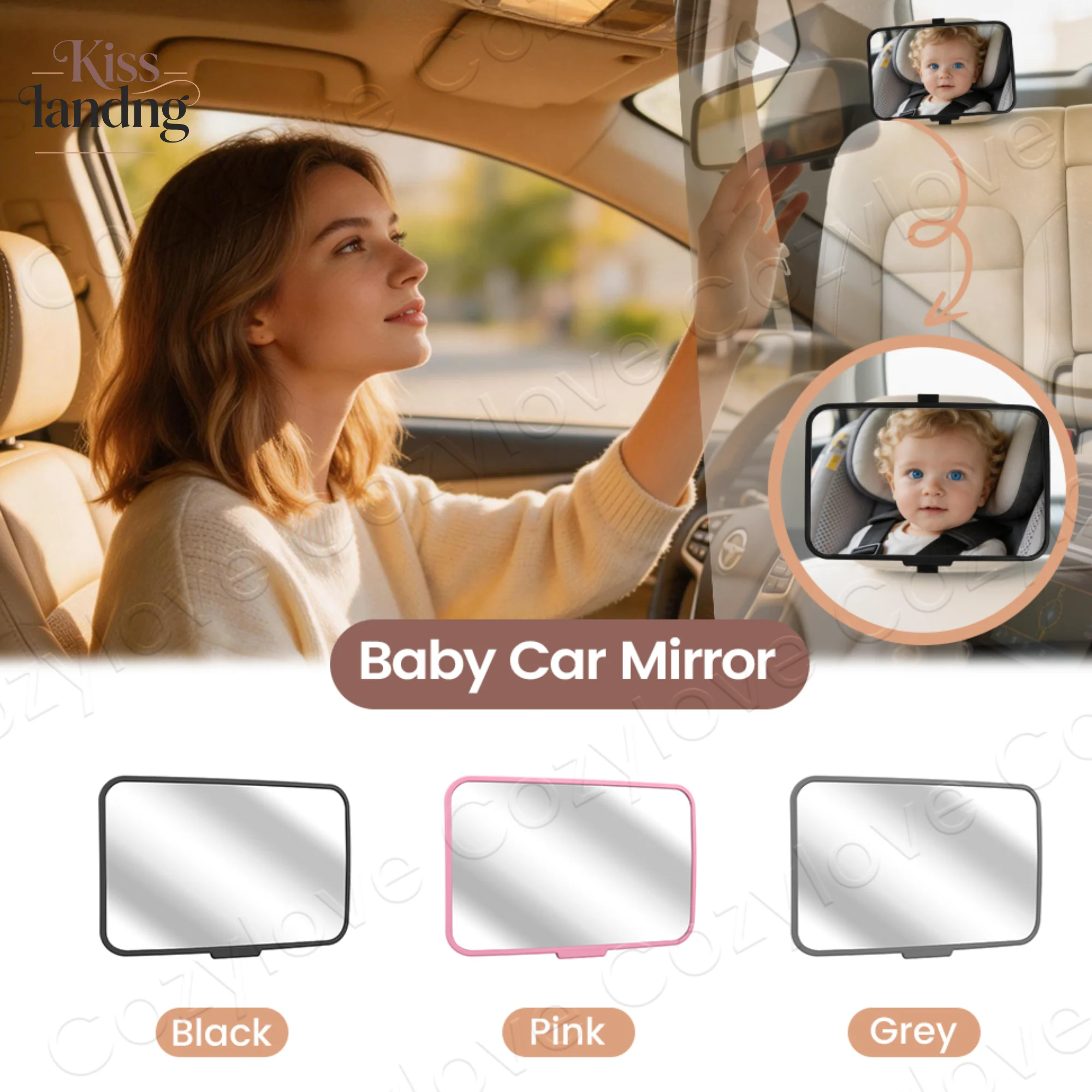 아기 카시트 뒷좌석용 거울 | 유아용 깨지지 않는 광각 뒷좌석 거울, 3가지 색상 옵션