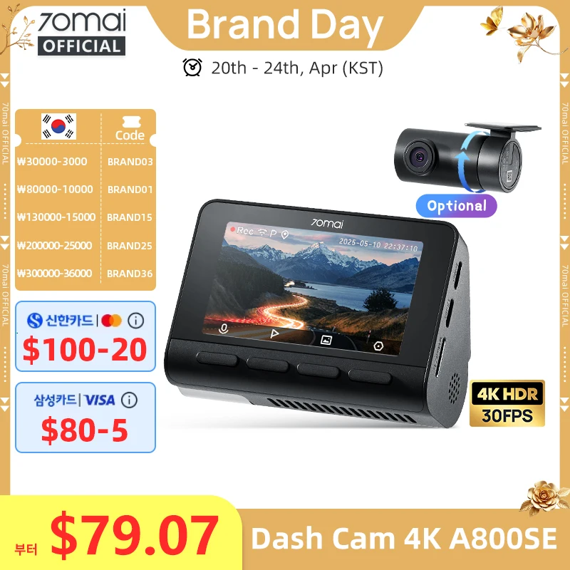 70mai 4K 블랙박스 A800SE 70mai A800S 음성 제어 슈퍼캡타이어 GPS ADAS 차량용 DVR 70mai A800SE UHD Wifi 6 업그레이드 버전
