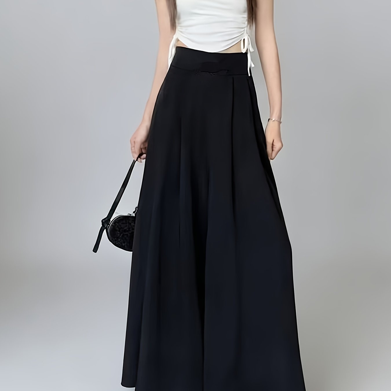 TEMU 여성용 여름 레이지 스타일 블랙 와이드 레그 스커트, 패셔너블하고 헐렁한 튜브, 살 보정과 날씬함 연출, 활용도 높은 A라인 스커트 팬츠