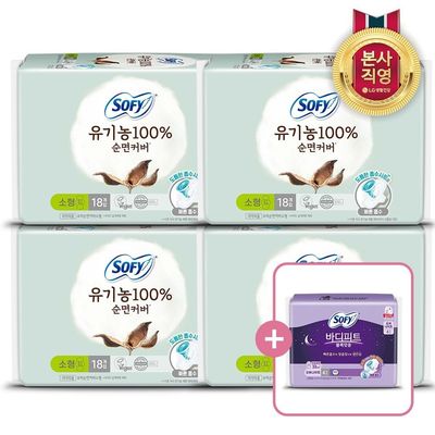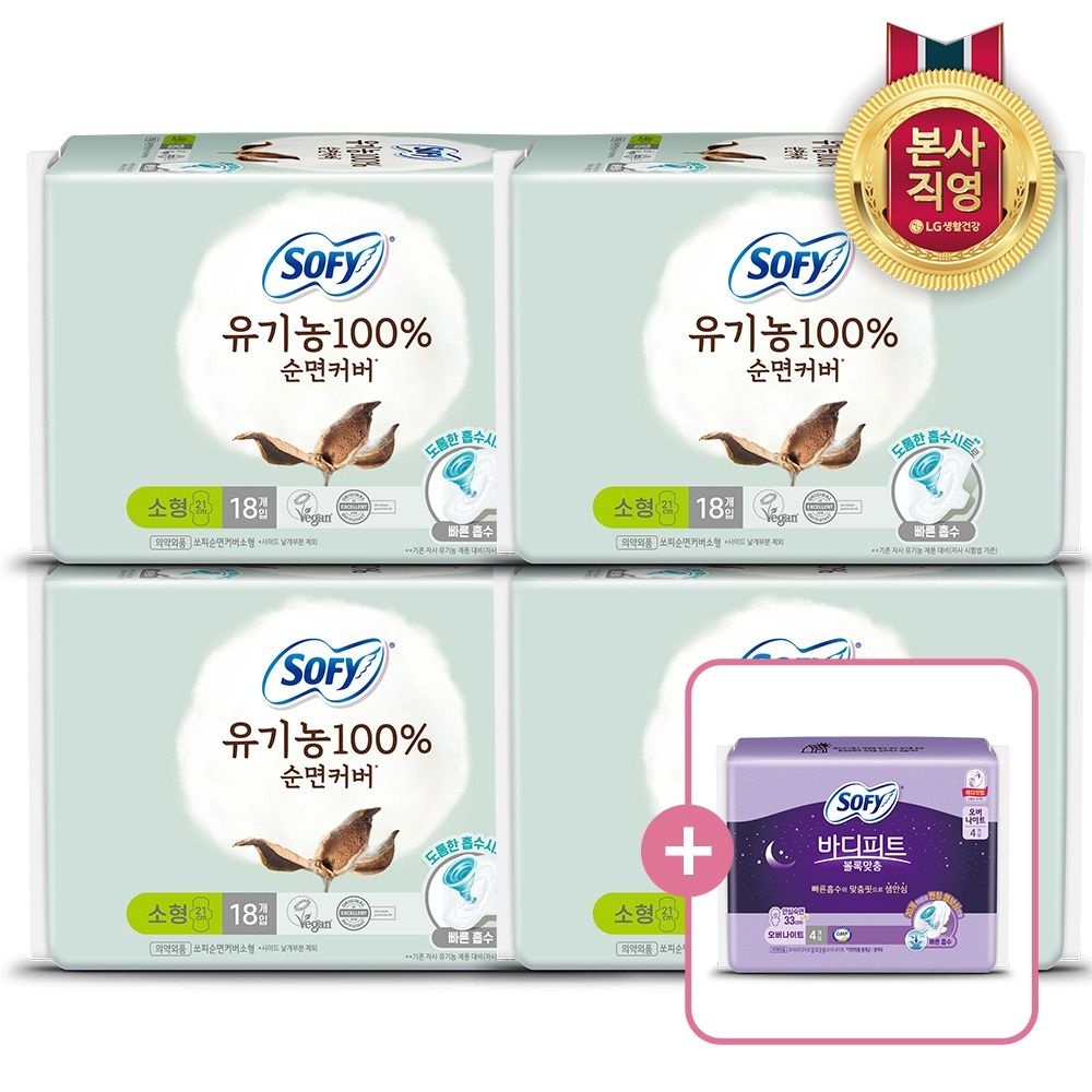 쏘피 유기 농 순면커버 생리대 소형 날개 18입X4개