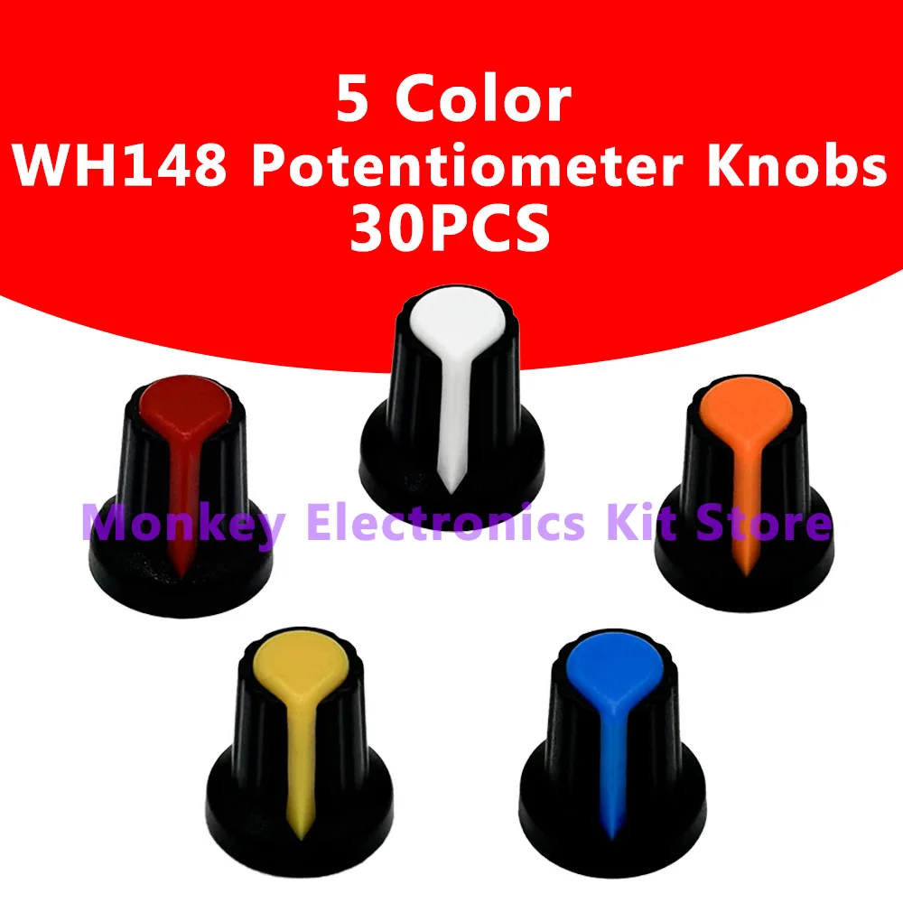 PLR 30PCS 5색 세트 15X17mm 6mm 플라스틱 캡 5색상 노랑 오렌지 파랑 흰색 빨강 WH148 포텐셔미터 노브