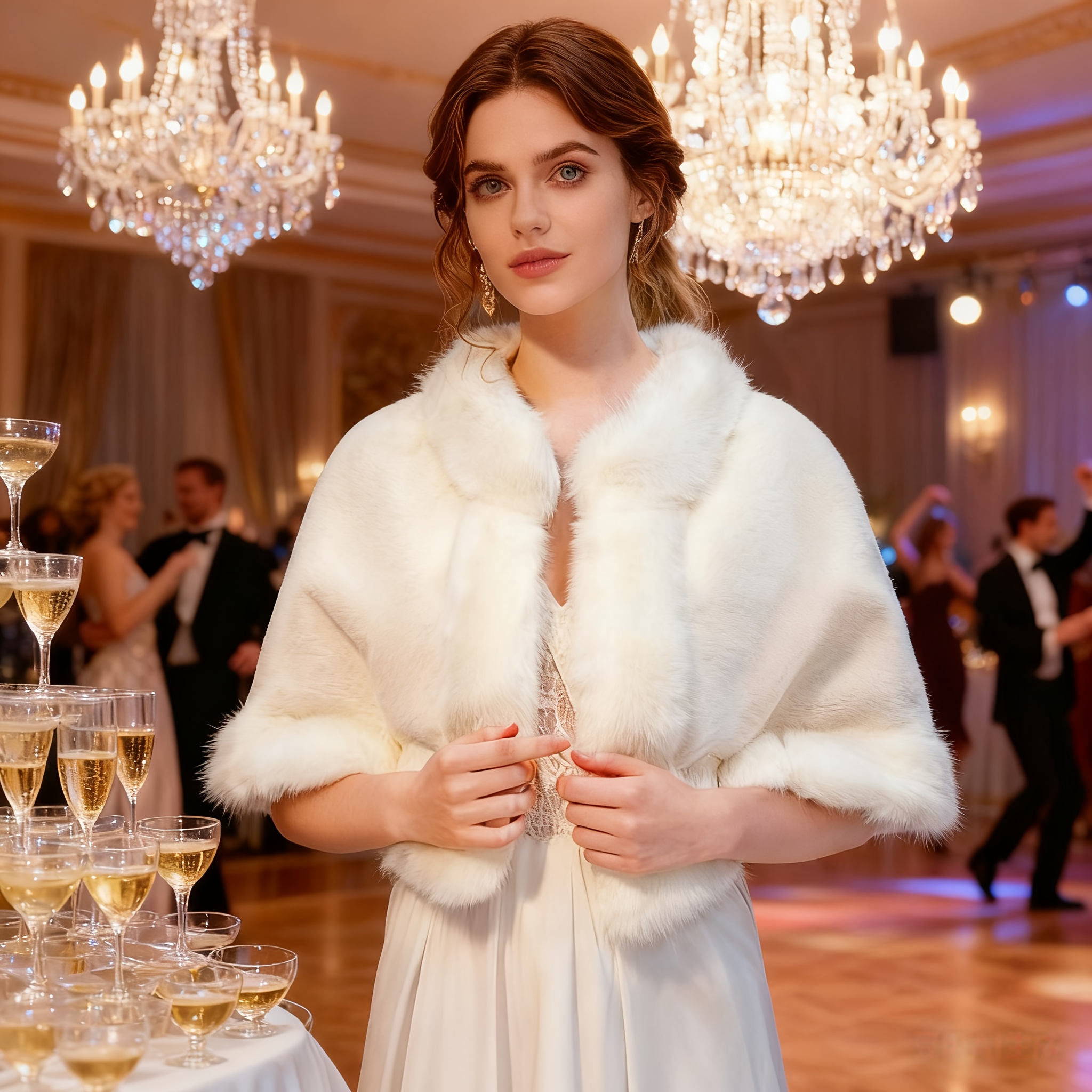 TEMU 우아한 인조 숄 - 여성용 따뜻한 랩 - 크리스마스, 결혼식, 파티용 - 캐주얼 스타일, 방풍 및 방설