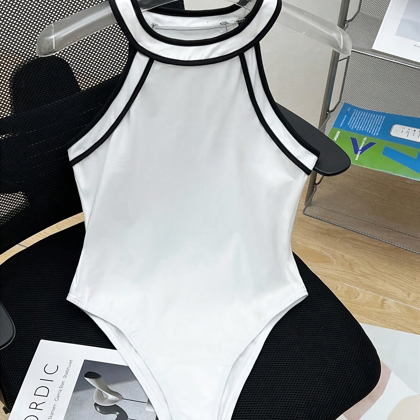 TEMU 여성용 우아한 민소매 바디수트 - 신축성 있는 라운드넥 컬러 블록 디자인, 대비 트림, 블랙 & 화이트, 올 시즌 활용 가능한 캐주얼부터 포멀 웨어, 세탁기 사용 가능, 다재다능한 패션, 매끈한 실루엣, 부드러운 질감