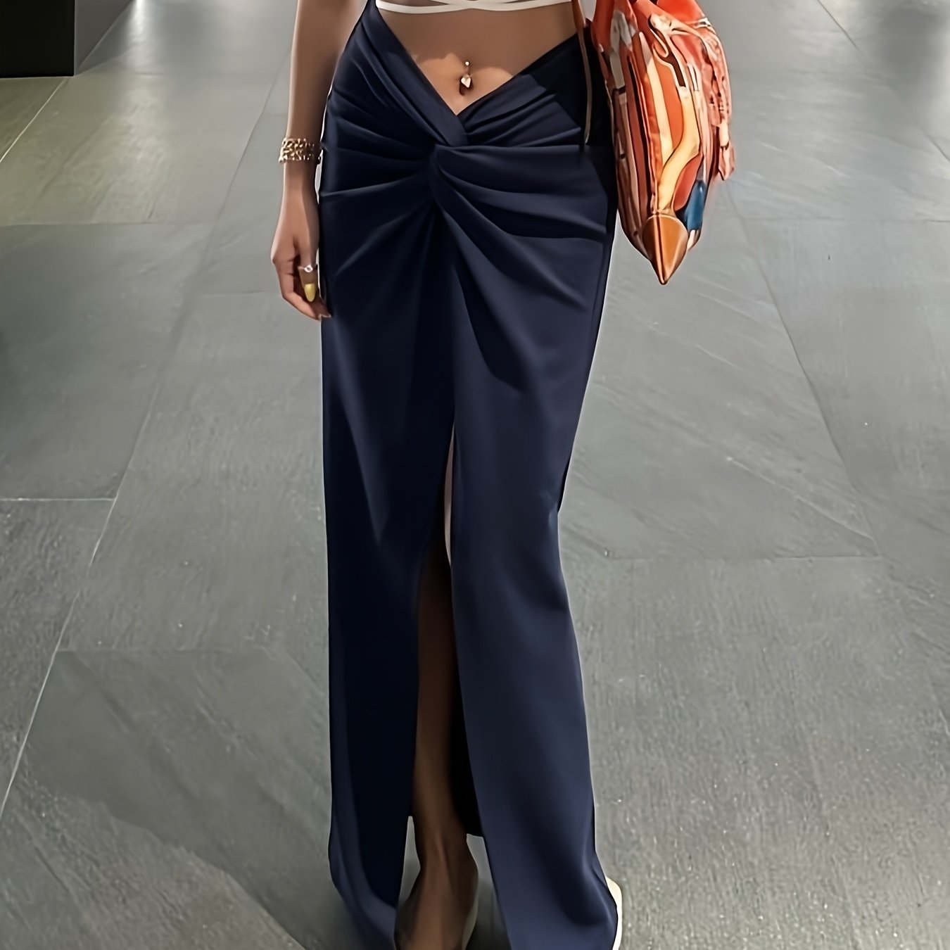 TEMU Almamuse 여성용 단색 홀아웃 롱 엘레강트 스커트