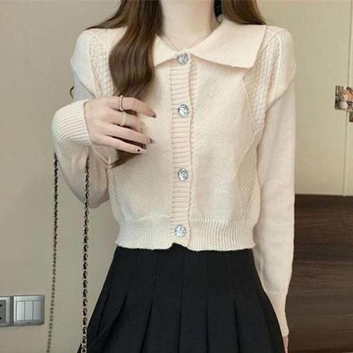 [셀러허브_여성트랜드패션]ONM 아가일 패턴 디자인 여성 카라 크롭 가디건 01