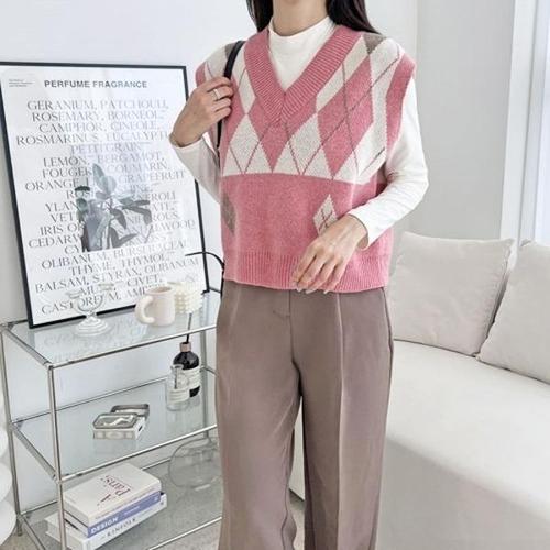[JHQSYBJ8_51IB]여자실물보장 아가일 니트조끼