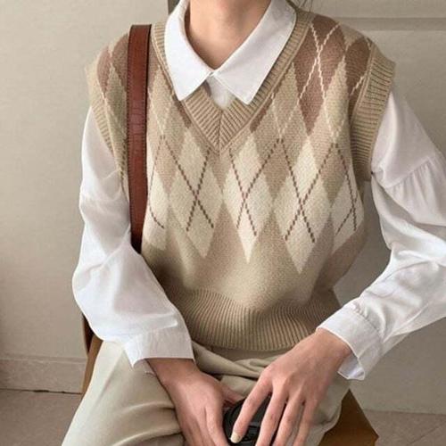 [셀럽하우스]아가일데일리 ZRFF1500 여성브이넥 니트조끼 5092