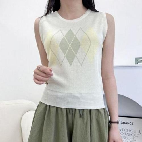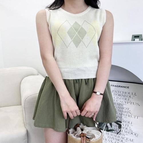 [엄지척]여성 인기 아가일 니트 조끼 감성 여자 여름 라운드_20388484_667501