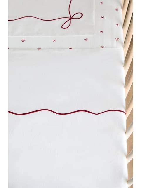 [에이치엔엠] 아기 침대 코튼 이불커버 & 베개커버 레드/리본 1300554002